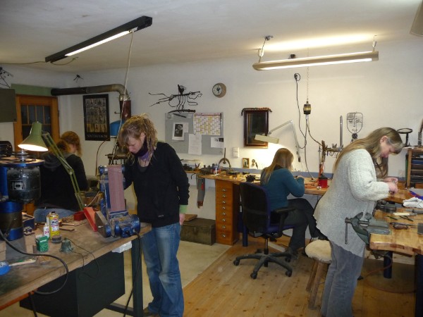 los gehts. Meistens wird vormittags ein einfacheres Schmuckstück gefertigt (Ring, Anhänger). Mittags